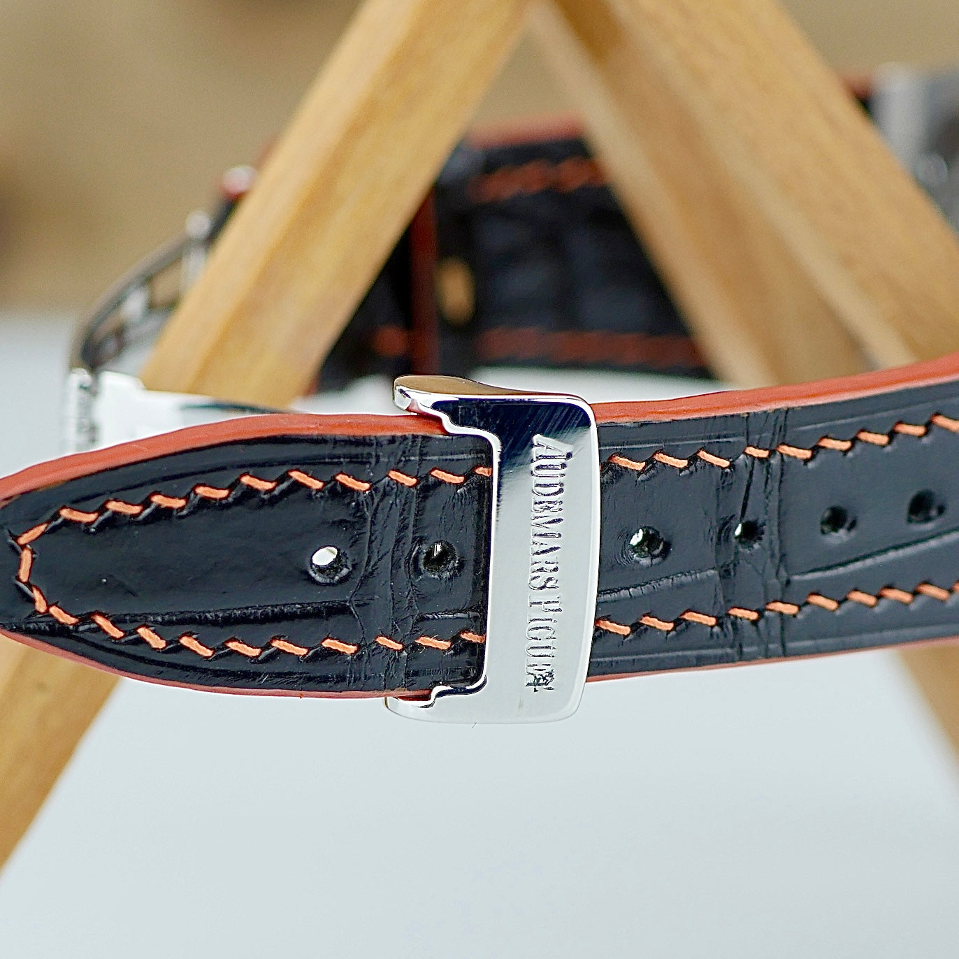 The watch features a black Méga Tapisserie dial with luminous hands and indexes for optimal legibility at depth. A rotating inner bezel, operated via a crown at 10 o'clock, enables precise dive timing. Powering the watch is AP’s automatic Calibre 3120, offering a 60-hour power reserve.