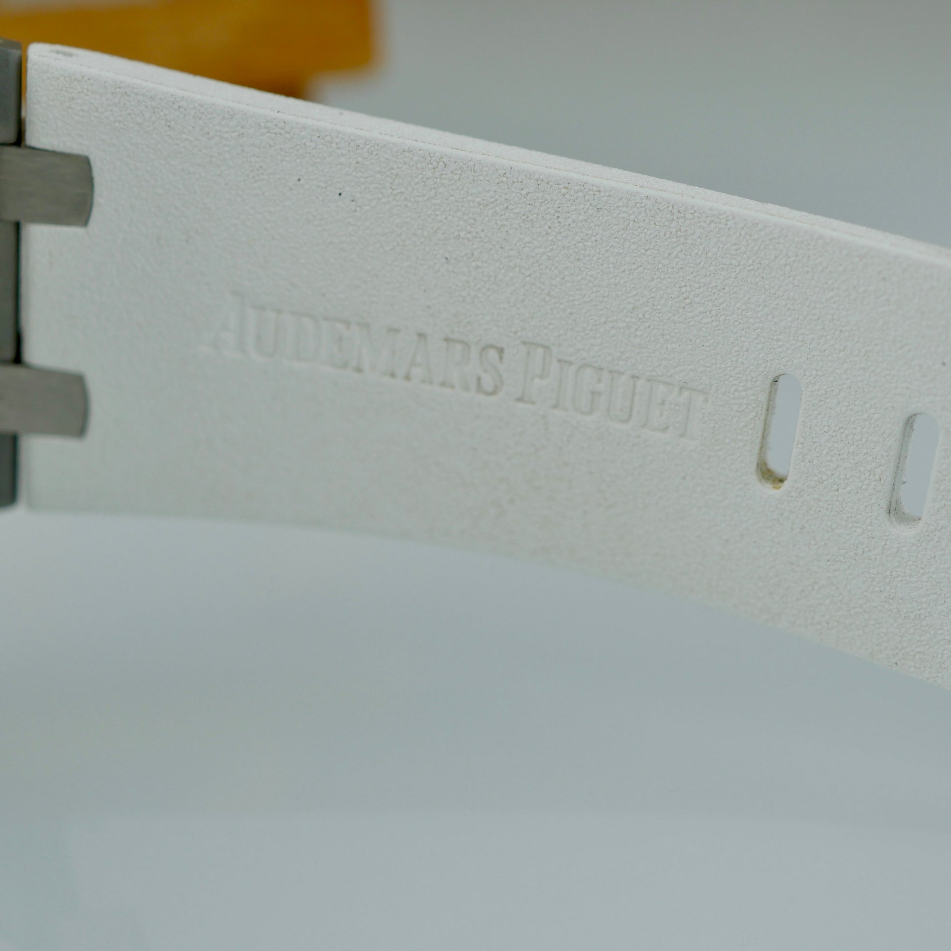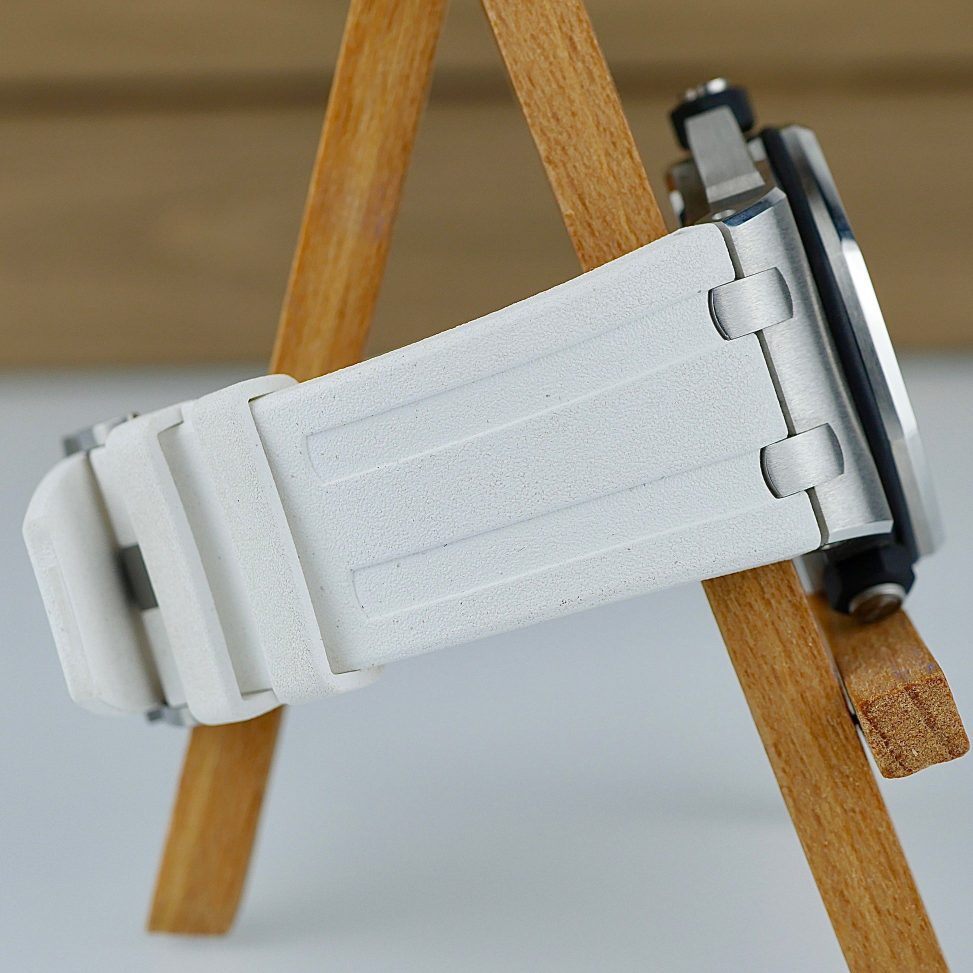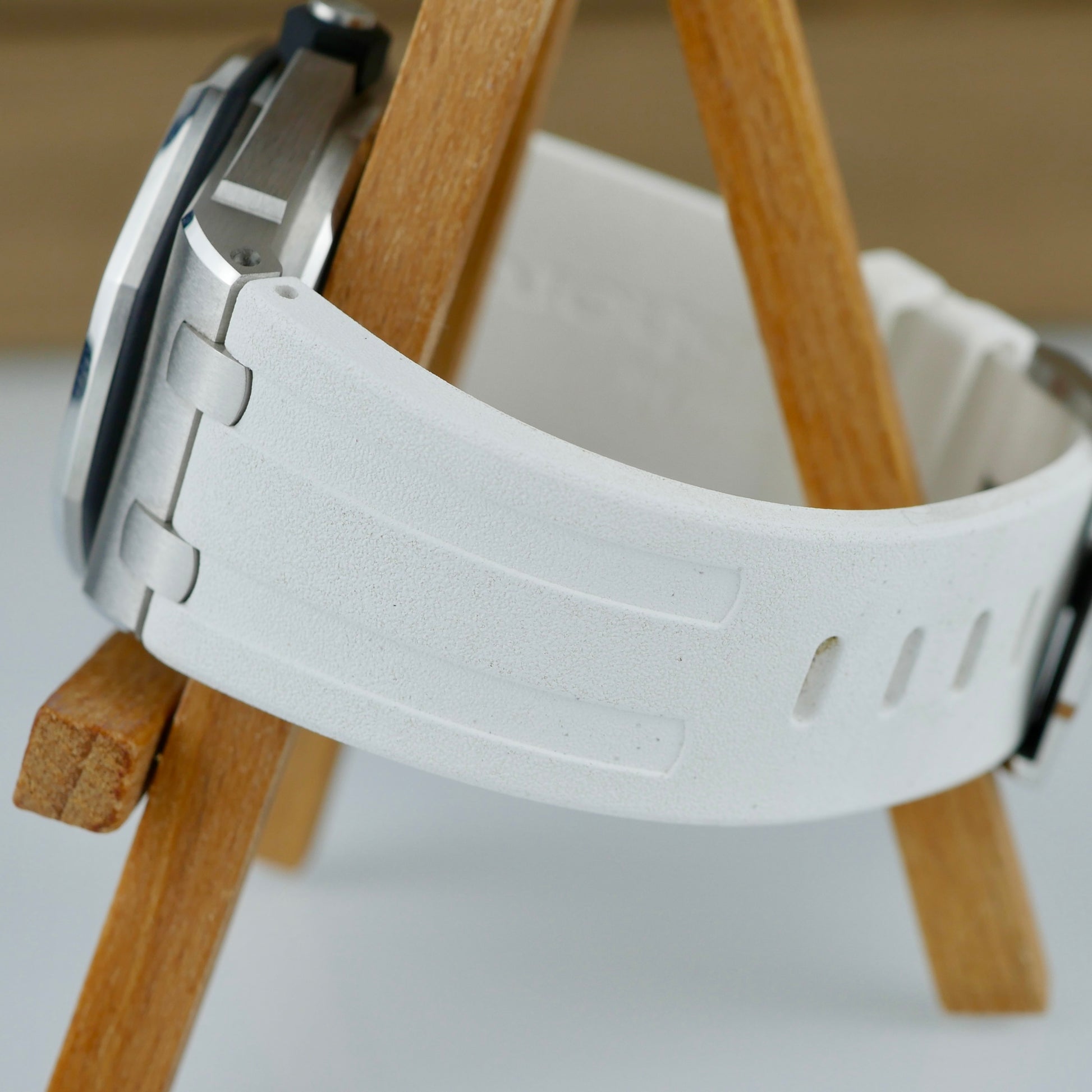 Strap: White rubber strap with AP steel pin buckle (aftermarket or AP OEM, depending on sourcing)