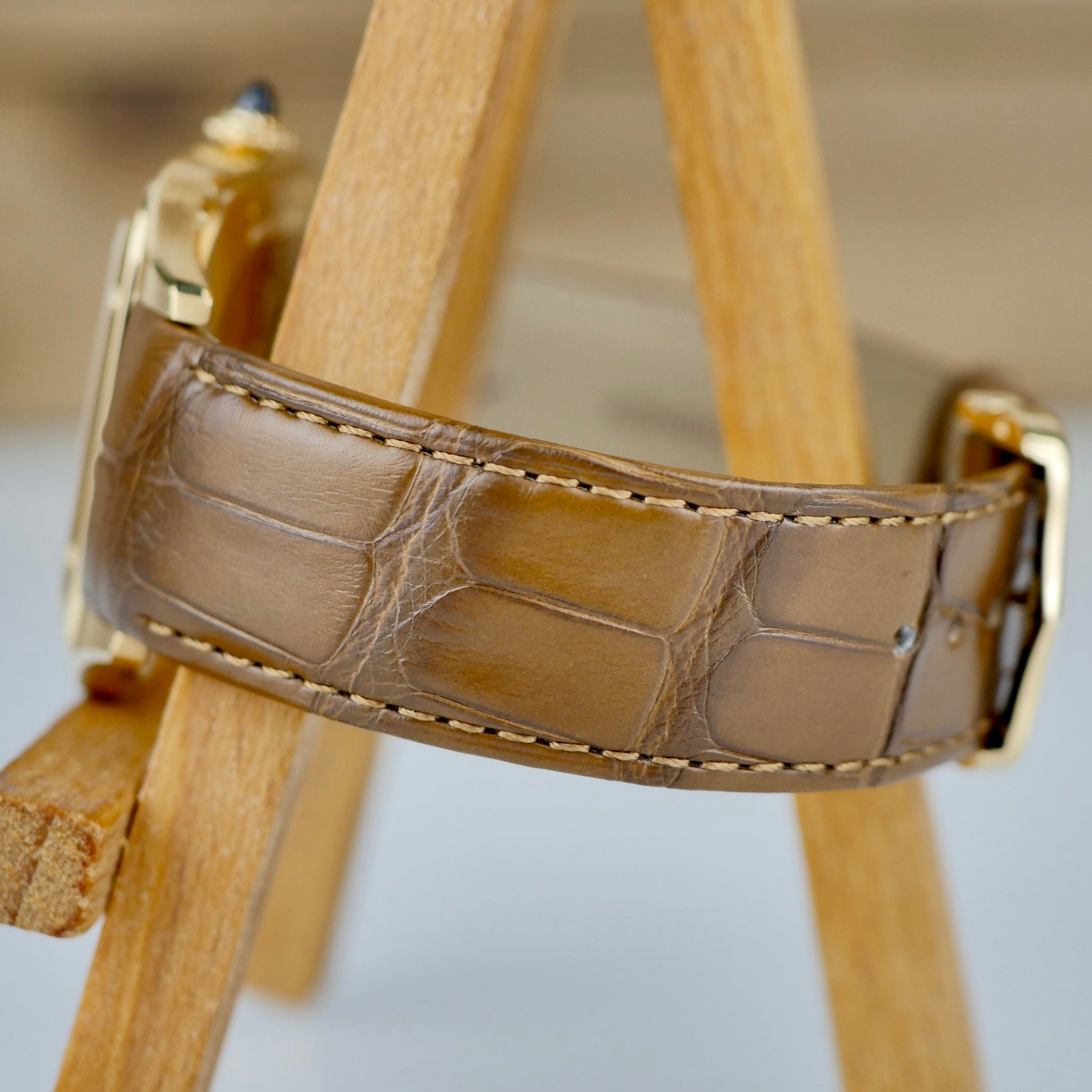 Strap: Brown Alligator Leather with 18K Yellow Gold Buckle