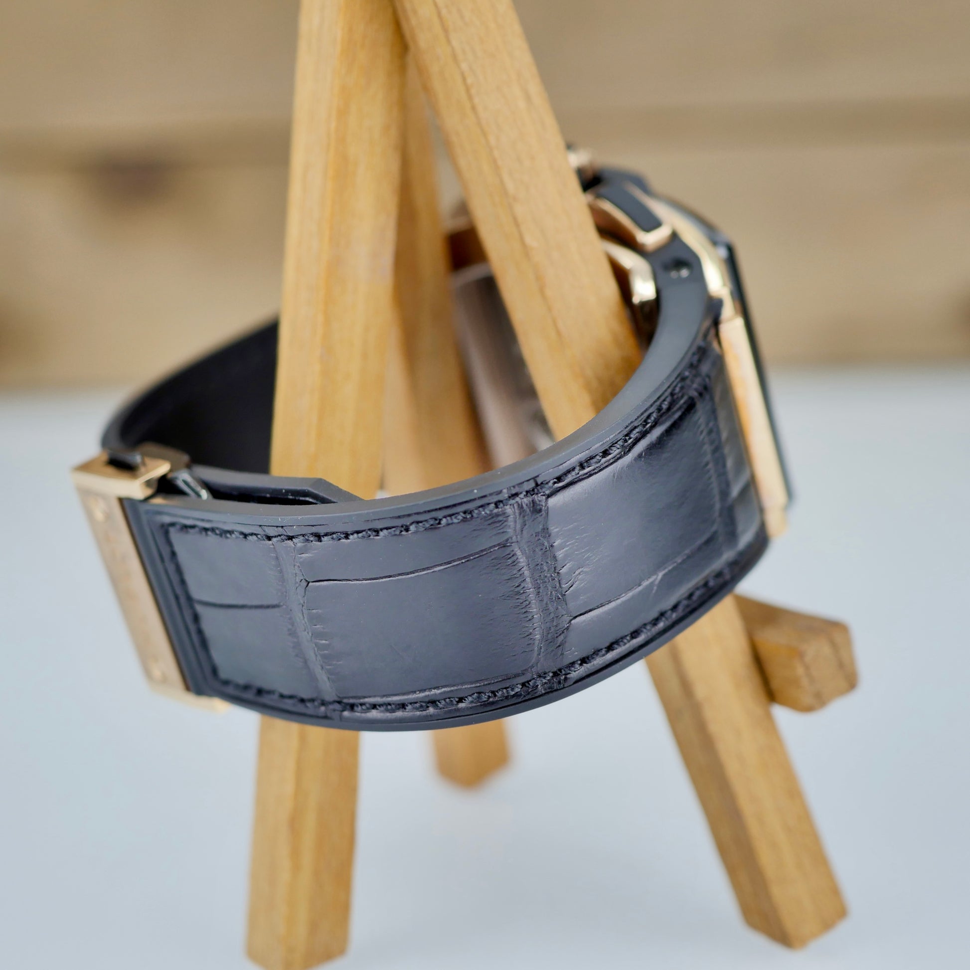 Fitted with a black alligator leather strap fused with rubber lining and secured by a King Gold and titanium folding clasp, the watch ensures both comfort and resilience.