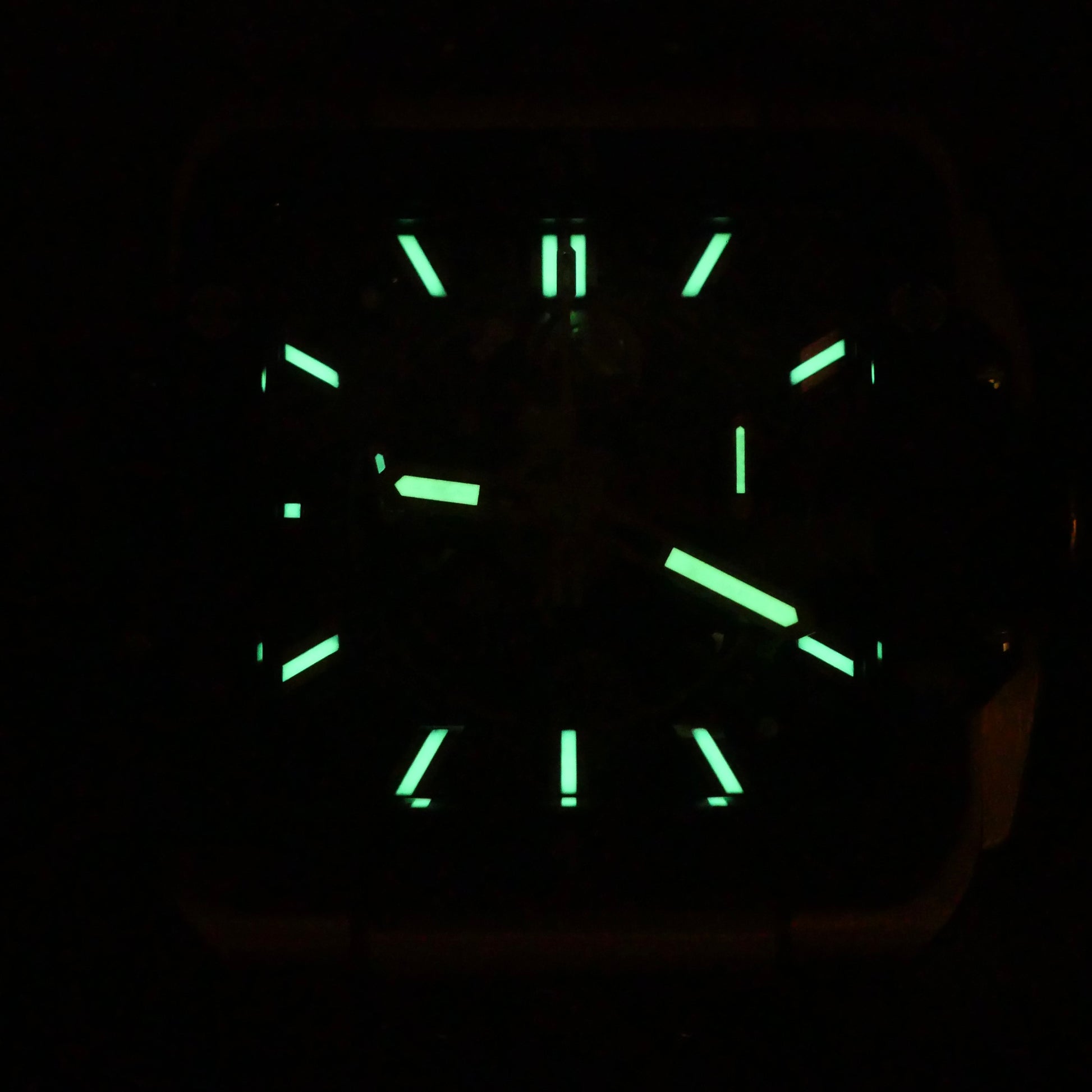 The watch features a 60-minute chronograph counter at 3 o’clock, small seconds at 9 o’clock, and a date display seamlessly integrated at 3 o’clock. With a 72-hour power reserve, it offers robust performance to match its avant-garde style.