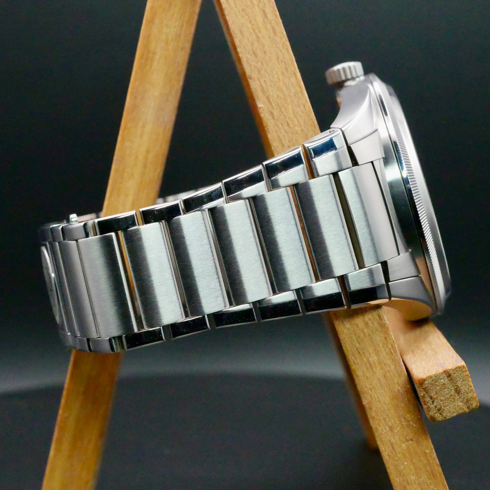 At its heart lies the Parmigiani Calibre PF009, an in-house automatic movement with a 48-hour power reserve, visible through the sapphire caseback. The watch is paired with a robust stainless steel integrated bracelet, offering a modern and versatile presence on the wrist.