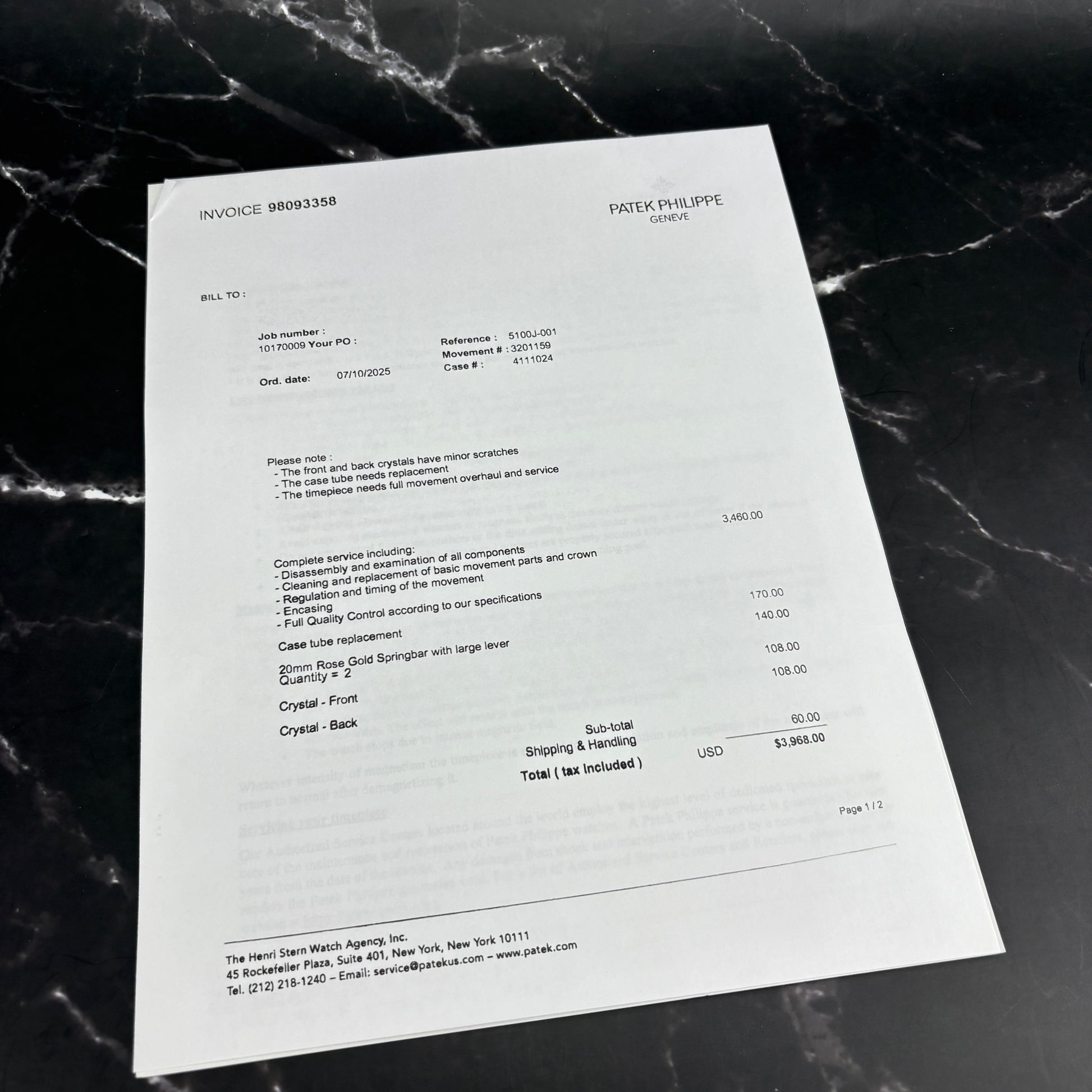 Examples that are sealed directly from Patek service are increasingly rare and highly sought after, particularly when paired with archival documentation. This watch represents an outstanding opportunity for collectors seeking provenance, condition, and long-term value in one acquisition.