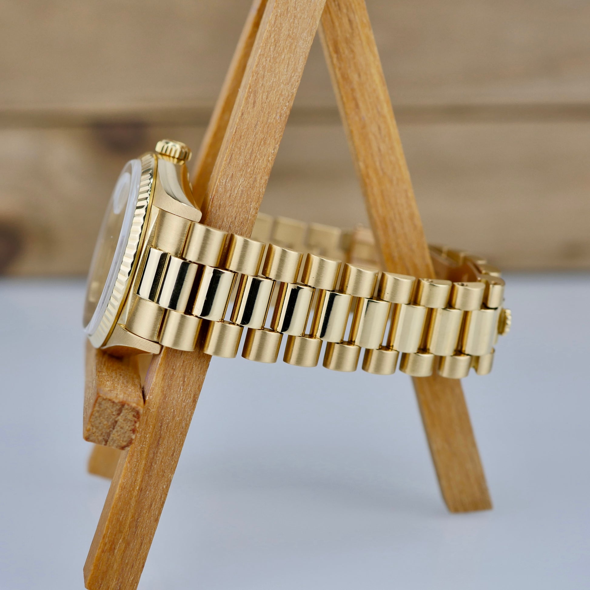Bracelet: 18k Yellow Gold President bracelet (fits up to 7.25 inches, 5 screws visible)